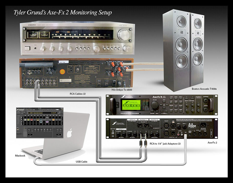 How you monitor your Axe-Fx rig is a critical step in getting good tones. I personally go with a home stereo route for my setup. Using a vintage Hi-Fi stereo and high quality Tower speakers is intended to generate a listening environment close to what I would use to listen to great music.